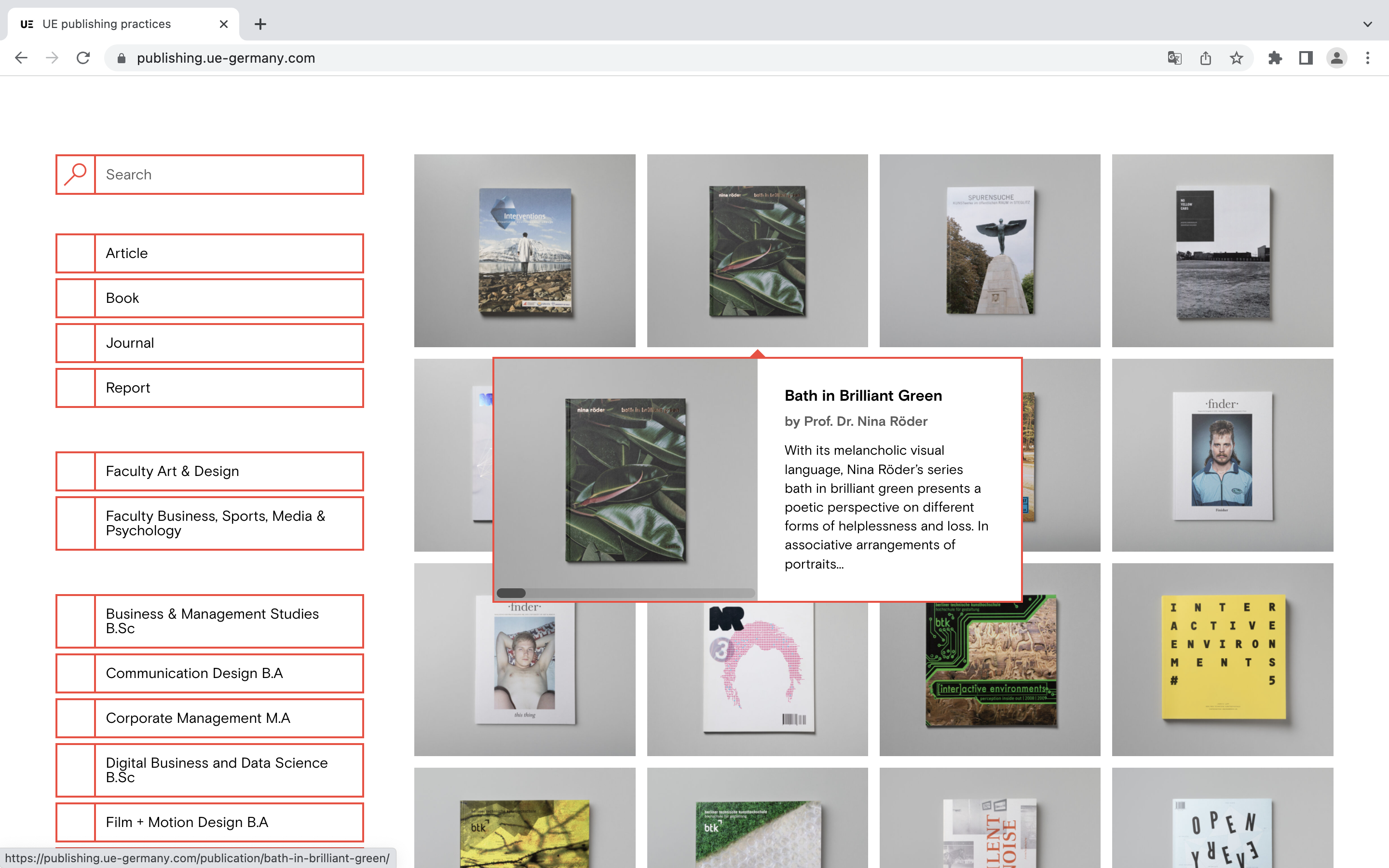Das ArchivUE ist eine digitale und standortübergreifende Plattform, in der die Abschlussarbeiten von Studierenden der University of Europe for Applied Sciences im Fachbereich Art & Design gesammelt und langfristig präsentiert werden. In dem im März 2020 gestarteten Forschungsprojekt werden Möglichkeiten des Archivierens und Publizierens vor dem Hintergrund technologischer Bewegungen ausgelotet und global Zugang zu den Resultaten aus Forschung und Lehre an der UE geschaffen.